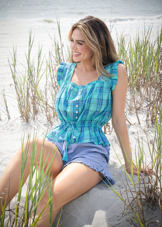 Sold outSmocked Blouse - Plaid Green