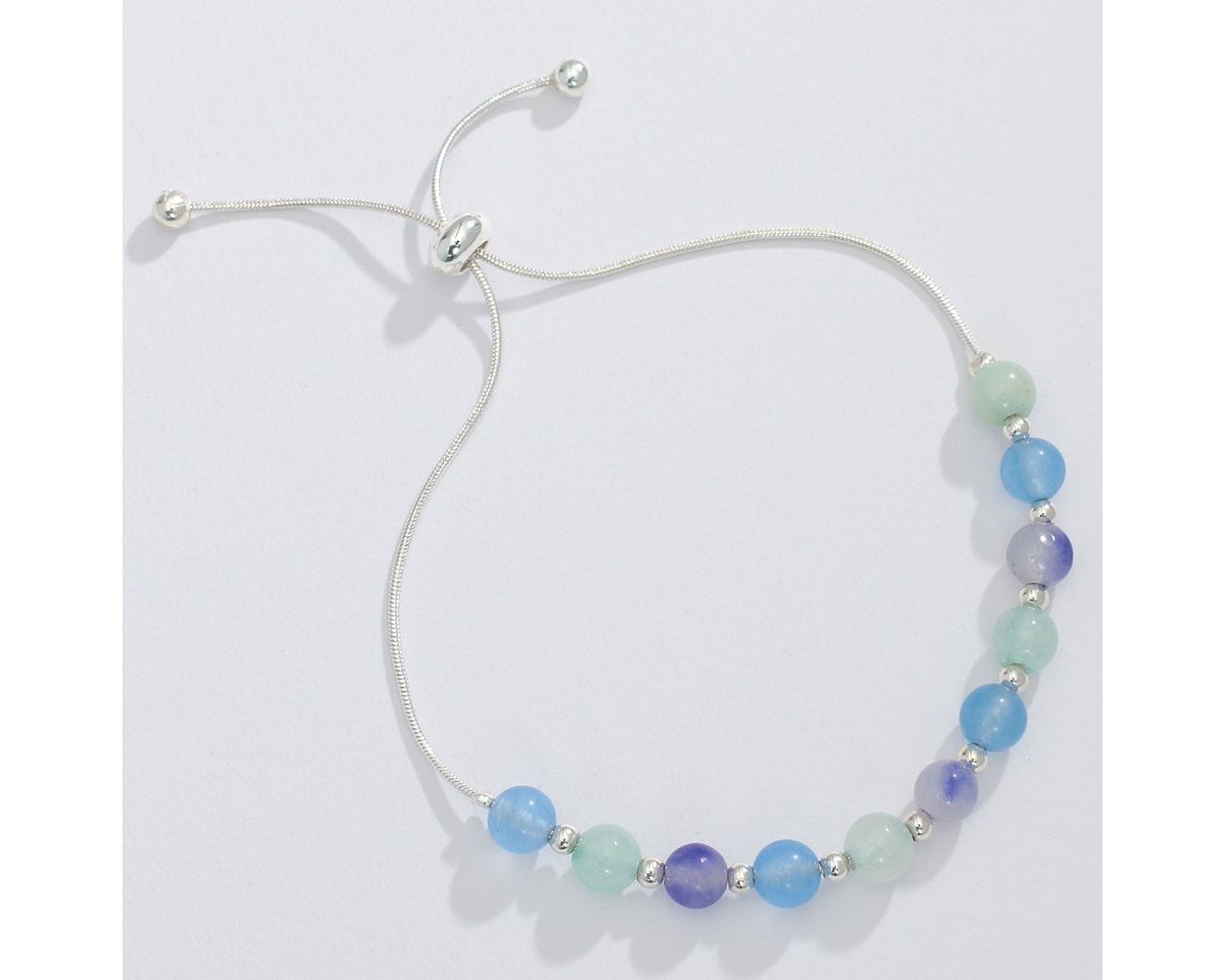 This bracelet is a playful pairing of amethyst and aquamarine beads with a touch of silver. Make a stylish statement with this unique piece that adds a pop of color to any outfit. Perfect for the quirky fashionista! Don't miss out!