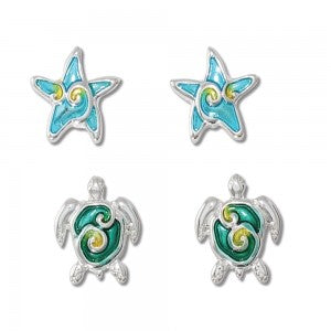 Duo Enamel Turtle & Starfish Earrings