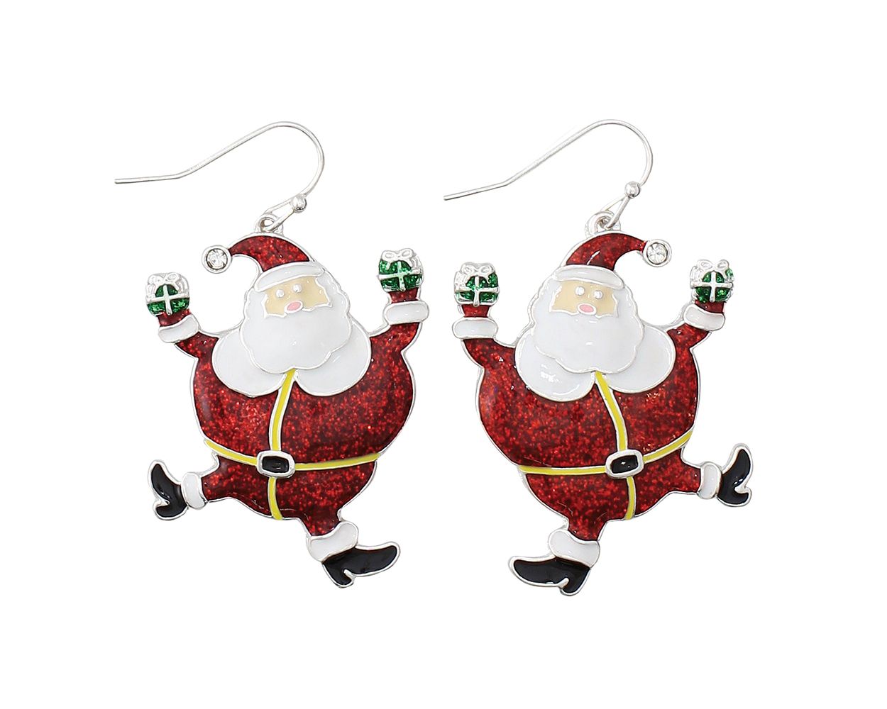 Frolicking Santas Enamel Earrings