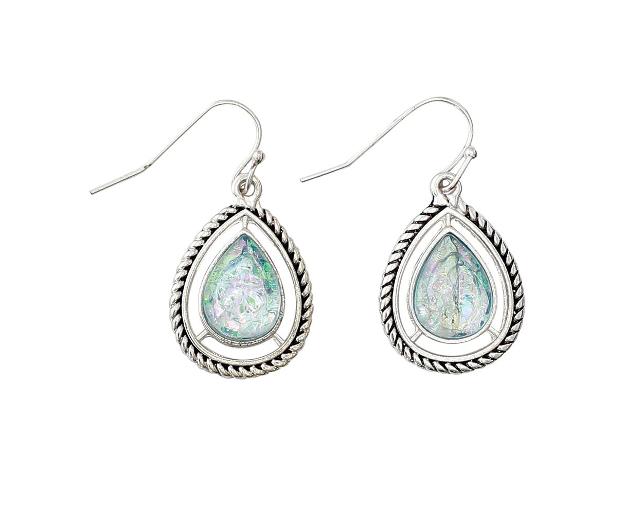 Oval Mint with Rope Frame Earrings