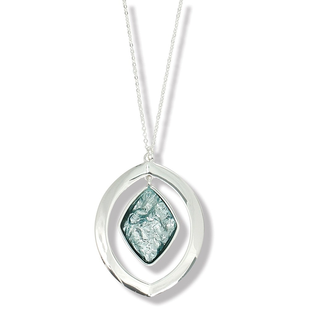 18" Silver neck with oval pendant featuring a teal foil center.